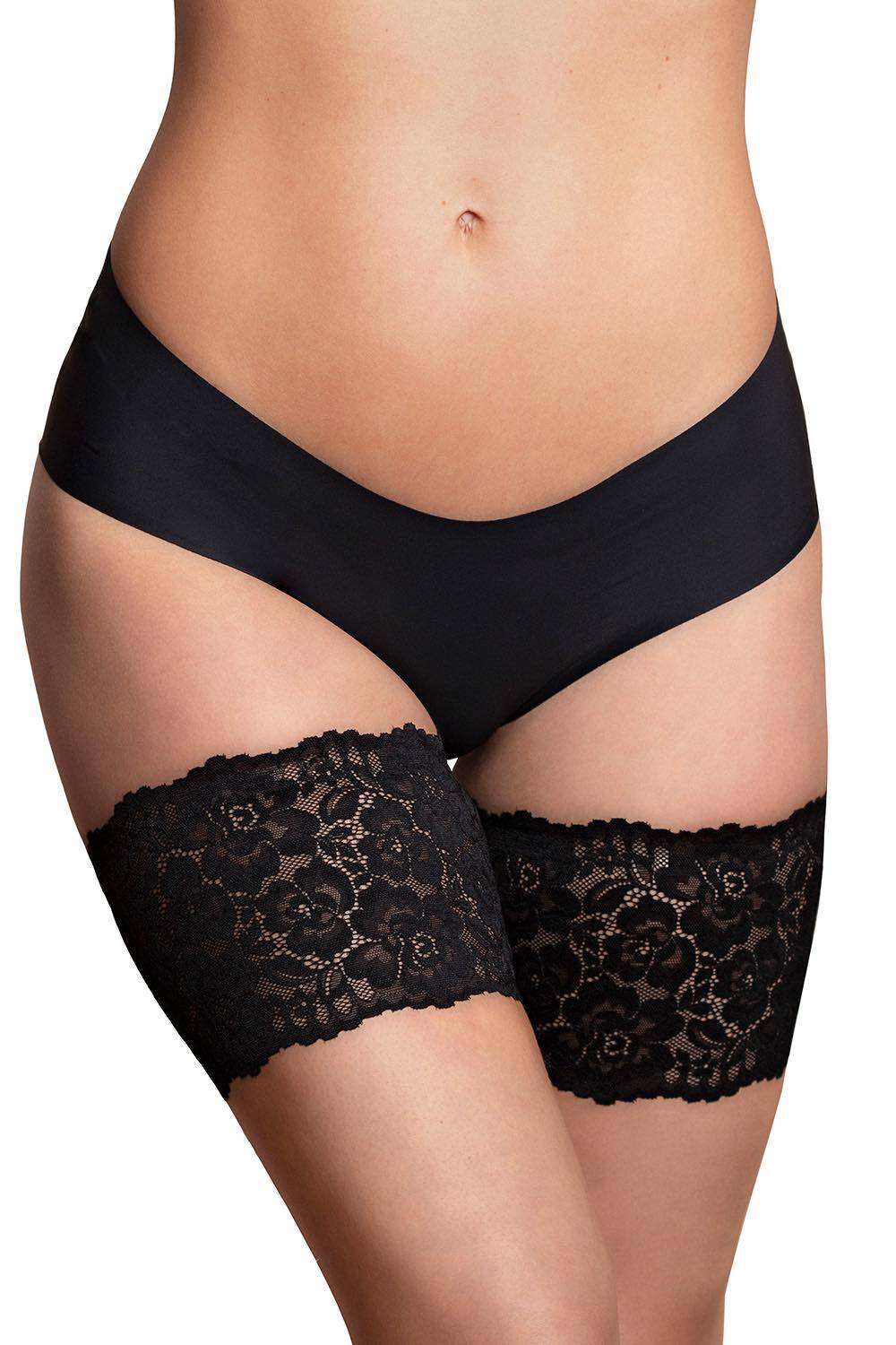 - Széles, csipke combvédő, nagyon szép színben, mely diszkrét védelmet biztosít az összeérő combok okozta bőr kidörzsölődése ellen.