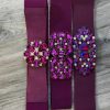 Strasszos kerek csatos széles gumis öv magenta