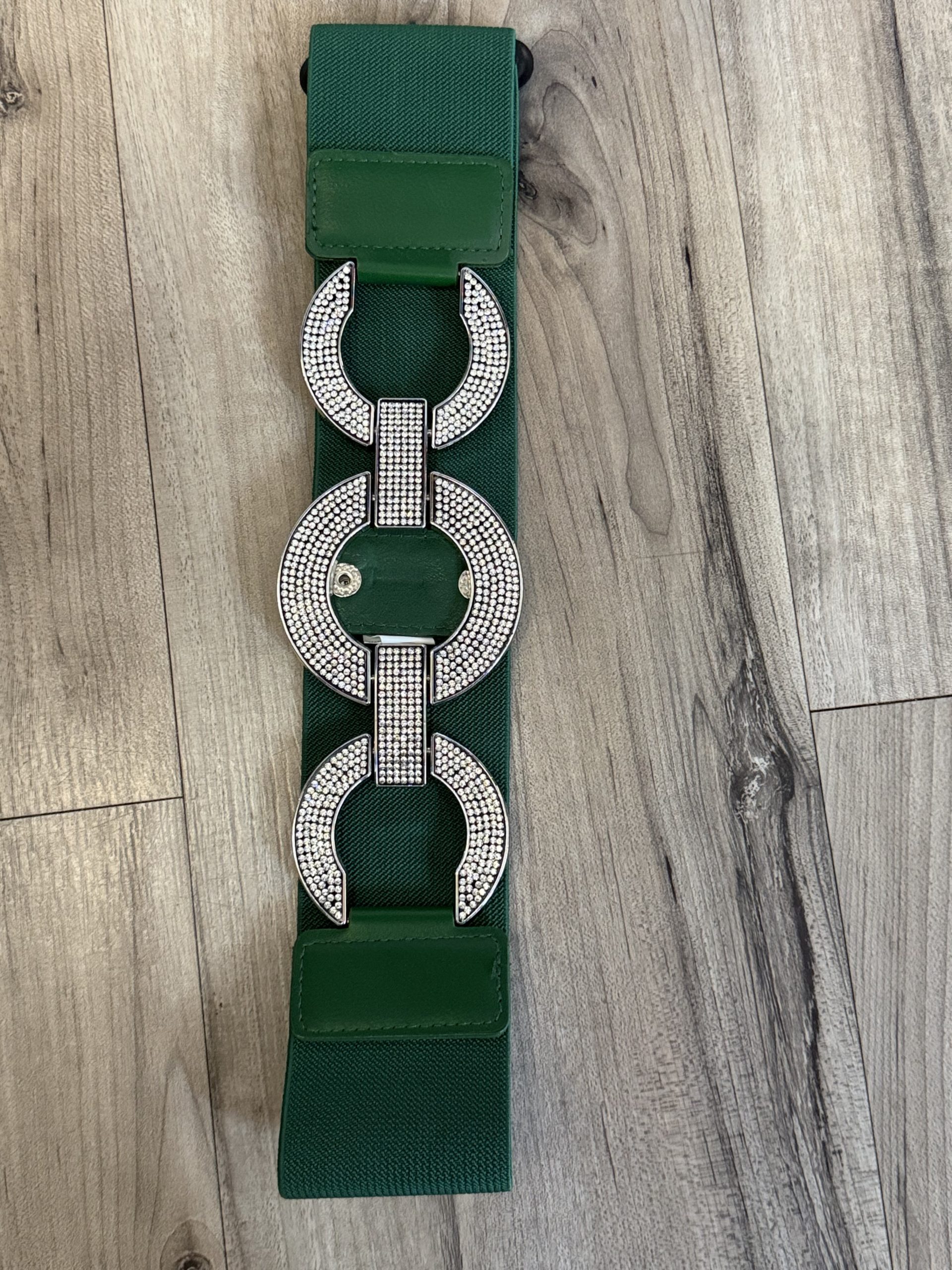 Széles gumis öv kerek, strasszos díszítéssel zöld