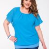 - Lezser, rövid ujjas blúz dekoltázsnál hajtásokkal, alján és ujjai végén finom gumis behúzással.