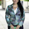 - Kényelmes, rugalmas bengalin anyagból készült, elöl álzsebekkel, hátul rátett zsebekkel, alján kis slicceléssel és szegecs jellegű díszítéssel.