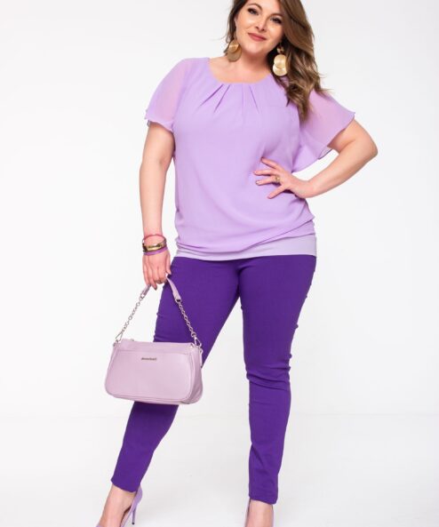 - Egyszínű muszlin felső színben hozzá hangolt trikóval, elején dekoratív rakásokkal.