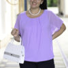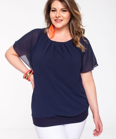 - Egyszínű muszlin felső színben hozzá hangolt trikóval, elején dekoratív rakásokkal.